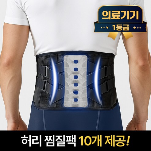 허리 안정과 척추 보호를 위해 설계된 1등급 의료용 복대로, 허리 통증 완화와 디스크 관리에 도움을 주며 찜질팩 10개가 포함되어 온열 치료와 고정 기능을 동시에 제공하는 제품입니다.